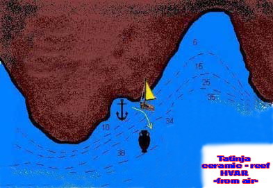 An old wreck without a boat. The boat was wooden so it is gone, but cargo is still there - ceramic dishes, coins all from 1864. 30m deep. In shallow water there is a beautiful reef. For all categories of divers!